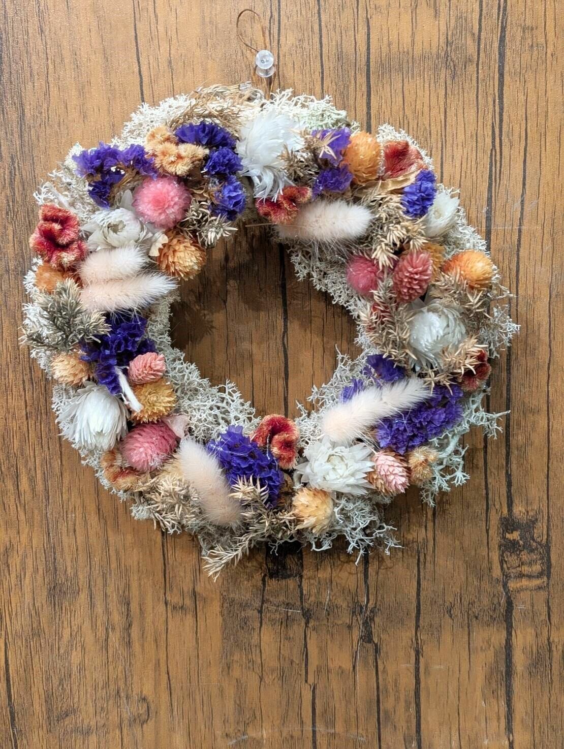Flower Style BEONE オリジナルの直径約18cmのリースです。プリザーブドフラワーやドライフラワーを使い、ひとつひとつフローリストが心を込めて丁寧に仕上げています。