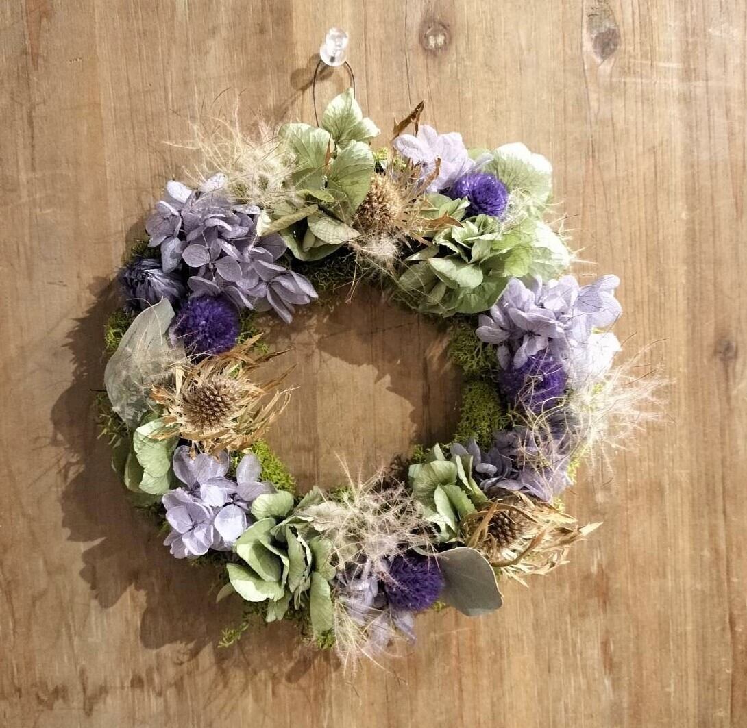 ~霜がおりた森に静かに漂う、紫の花々が奏でる冬のリース~
