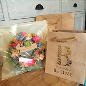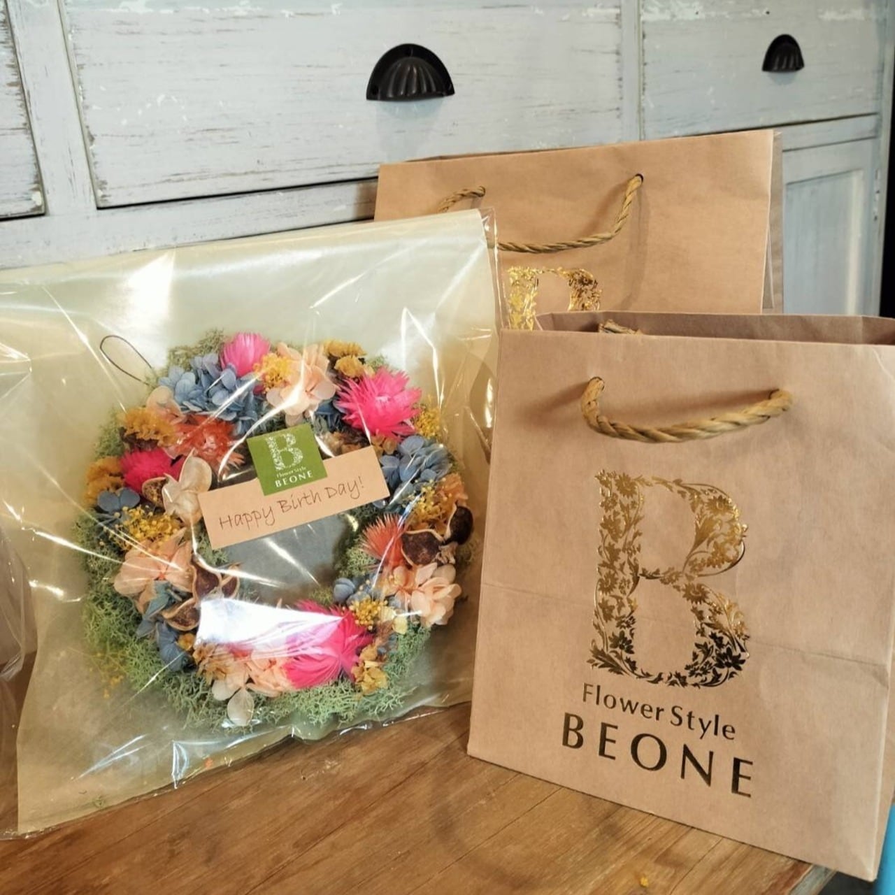Flower Style BEONE オリジナルの直径約17cmの季節限定リースです。プリザーブドフラワーやドライフラワーを使い、ひとつひとつフローリストが心を込めて丁寧に仕上げているシーズナルリース。